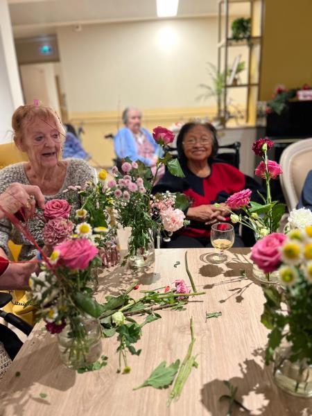 Aujourd'hui, un joli moment de partage et de créativité avec les résidents lors de notre atelier floral 💐